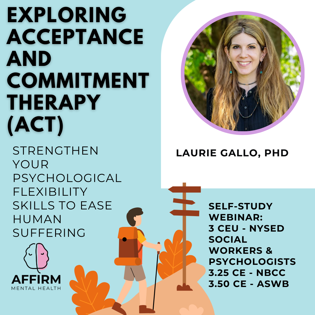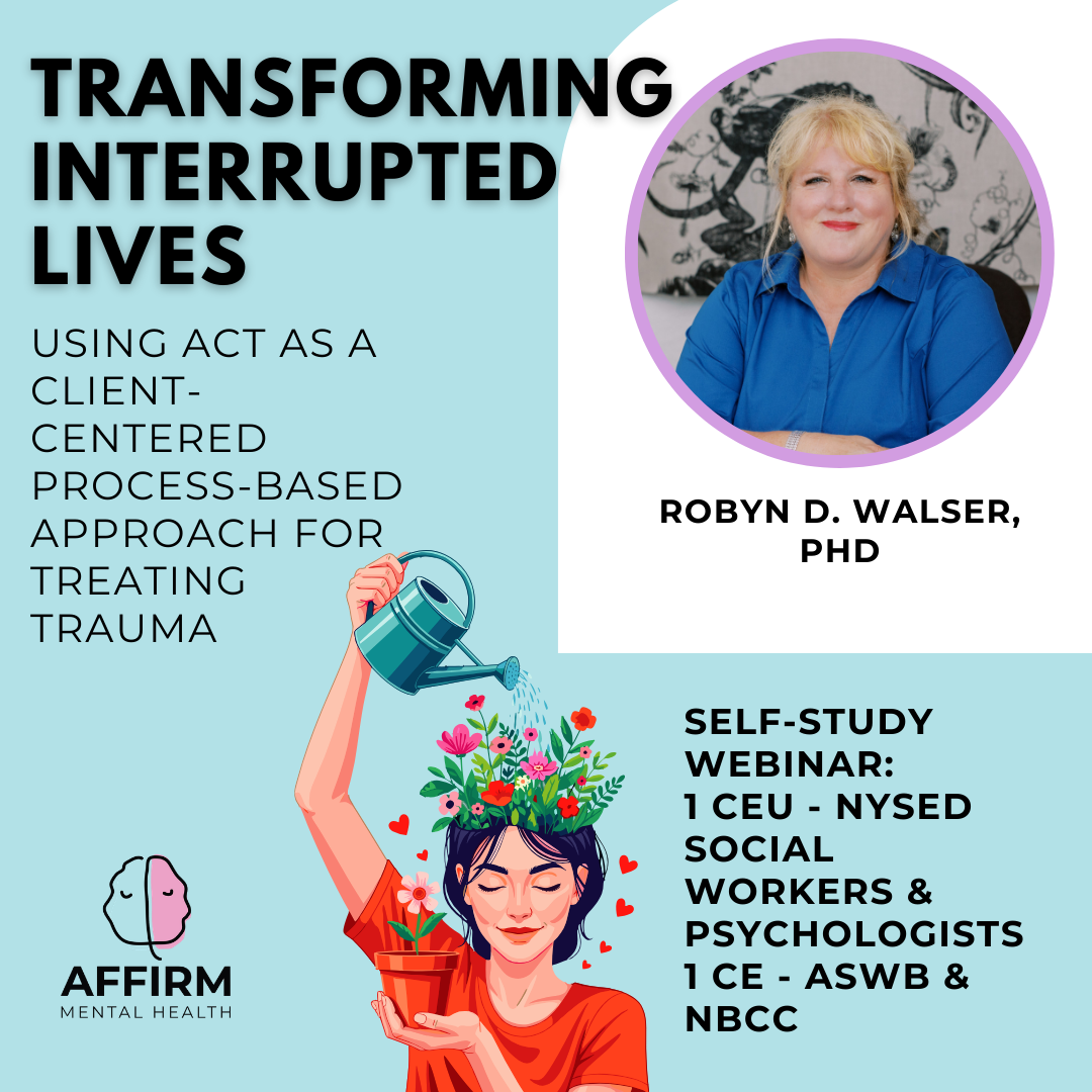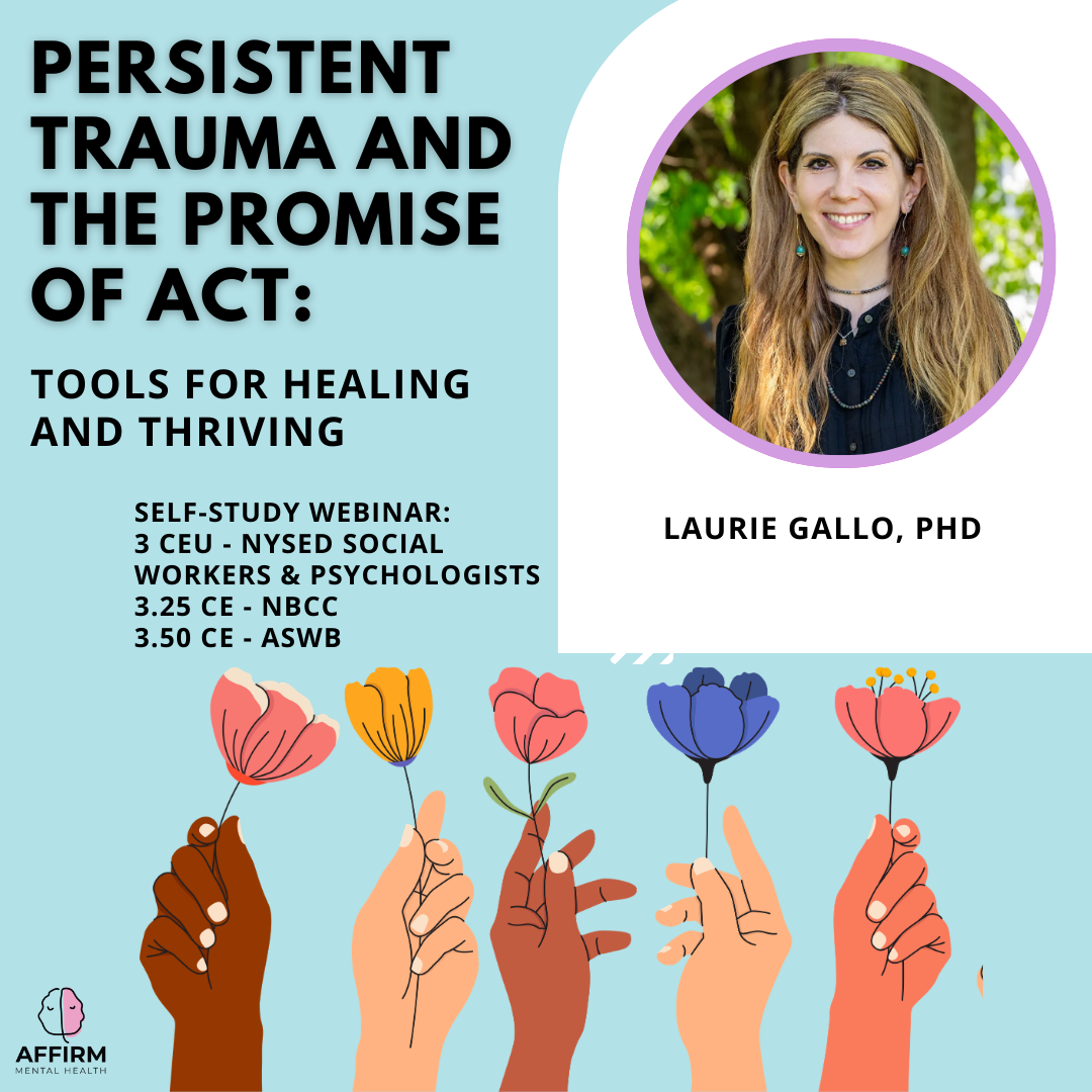 This pre-recorded webinar explores how Acceptance and Commitment Therapy (ACT) can be used to support trauma survivors in their recovery journey. Change is an inherent part of the human experience, and many individuals seek therapeutic support when challenges impede their personal growth and well-being. ACT has emerged as a powerful and flexible therapeutic approach, with multiple levels of process that can be tailored to individual client needs. Trauma can profoundly impact individuals, creating barriers to health and leaving lasting emotional scars. This self-study webinar will provide insights into using ACT to help survivors regain meaning in life and move forward in their healing process.