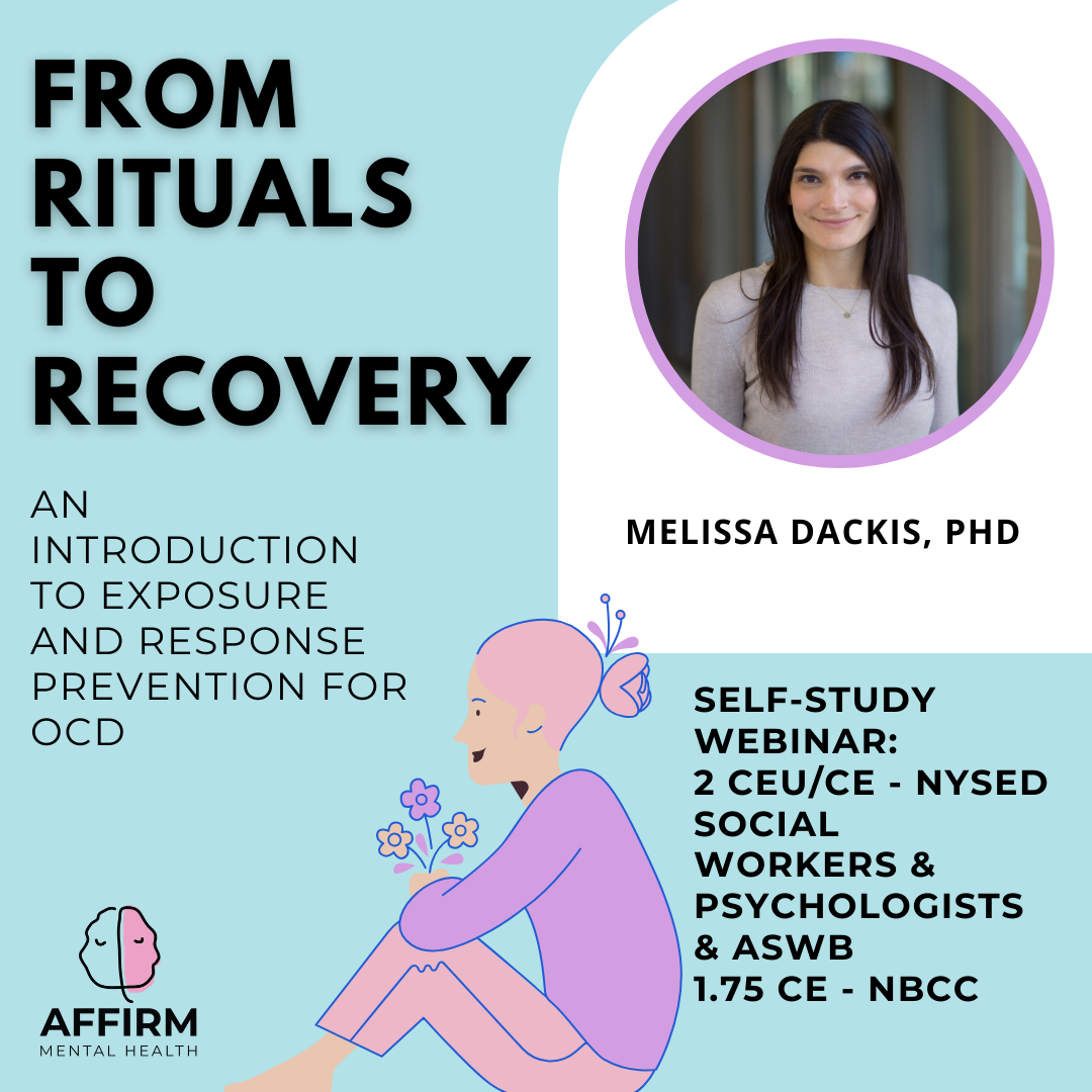 In this pre-recorded webinar, mental health professionals will gain a strong foundation in Exposure and Response Prevention (ERP), the gold-standard treatment for OCD. Learn to conceptualize OCD behaviorally, motivate clients to confront fears, and apply assessments to target obsessions and compulsions. Through case examples and demonstrations, gain practical ERP skills—perfect for beginners or those seeking a refresher. Empower your practice with expert guidance and evidence-based strategies to make a lasting impact.