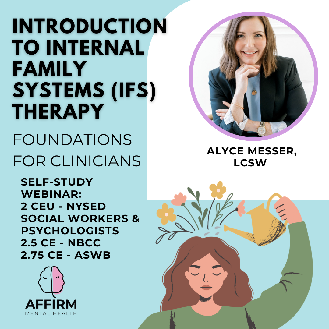 In this pre-recorded webinar, clinicians will be introduced to the foundational principles of Internal Family Systems (IFS) therapy, including the internal system of parts and the healing presence of Self Energy. Participants will learn how to identify and differentiate between types of parts—protectors, managers, firefighters, and exiles—while cultivating curiosity and compassion toward each. Through guided discussion and examples, the training highlights how differentiation itself can serve as a pathway to healing. The course also introduces the 6F’s as a structured approach to engaging with parts and provides an overview of the steps toward unburdening and integration. Ultimately, the goal is to help clinicians begin to experience and model Self-led connection as the foundation for therapeutic transformation.