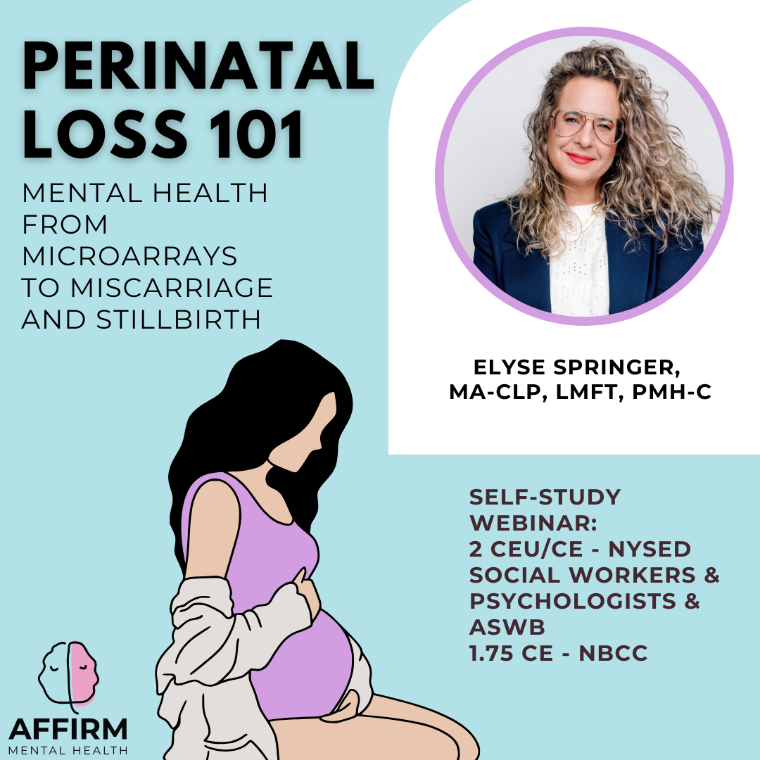 Join Elyse Springer, MA-CLP, LMFT, PMH-C, in this pre-recorded webinar for an in-depth overview of mental health in perinatal loss, spanning pre-conception through one year postpartum. From microarrays to miscarriage and stillbirth, you'll gain a deeper understanding of the unique mental health challenges faced by bereaved parents. Learn how to effectively support clients through subsequent pregnancies, navigate complexities in perinatal mood and anxiety disorders related to loss, and develop key strategies for differentiation in clinical care.