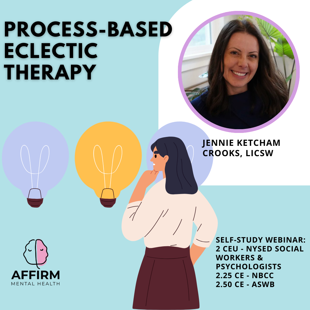 In this prerecorded webinar, participants will explore Process-Based Eclectic Therapy—a structured yet flexible approach to integrating therapeutic modalities based on core processes of change. These universal change processes support individualized care while maintaining clinical integrity. This course equips clinicians with practical tools to implement an evidence-based eclectic approach, helping them identify and target key processes, select effective interventions, and adapt treatment in real time based on client needs.