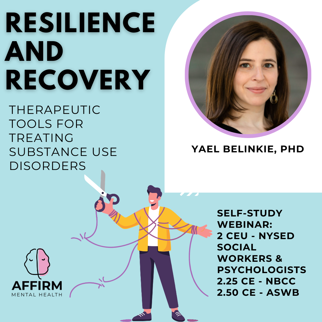 In this pre-recorded webinar, you'll gain essential therapeutic techniques to support individuals with substance use disorders on their journey to resilience and recovery. Through expert guidance and practical insights, you'll enhance your clinical skills and empower clients in their healing process. Join us for this transformative learning experience and strengthen your ability to make a meaningful impact in the lives of those you serve.