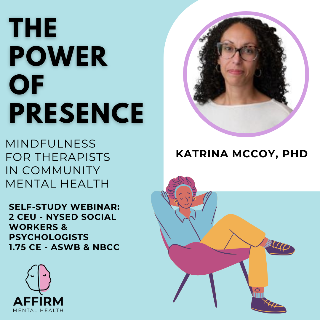 In this prerecorded webinar, Dr. Katrina McCoy explores the incredible world of mindfulness and its therapeutic potential, guiding you in transforming mindfulness into tangible skills for your clinical toolkit. Through engaging exercises, you will strengthen your mindfulness abilities, break down mindfulness into practical components, and deepen the effectiveness of your interventions for lasting change. This is a unique opportunity to enhance your clinical practice and be part of a dynamic, collaborative learning experience—don’t miss the chance to unlock the transformative potential of mindfulness.